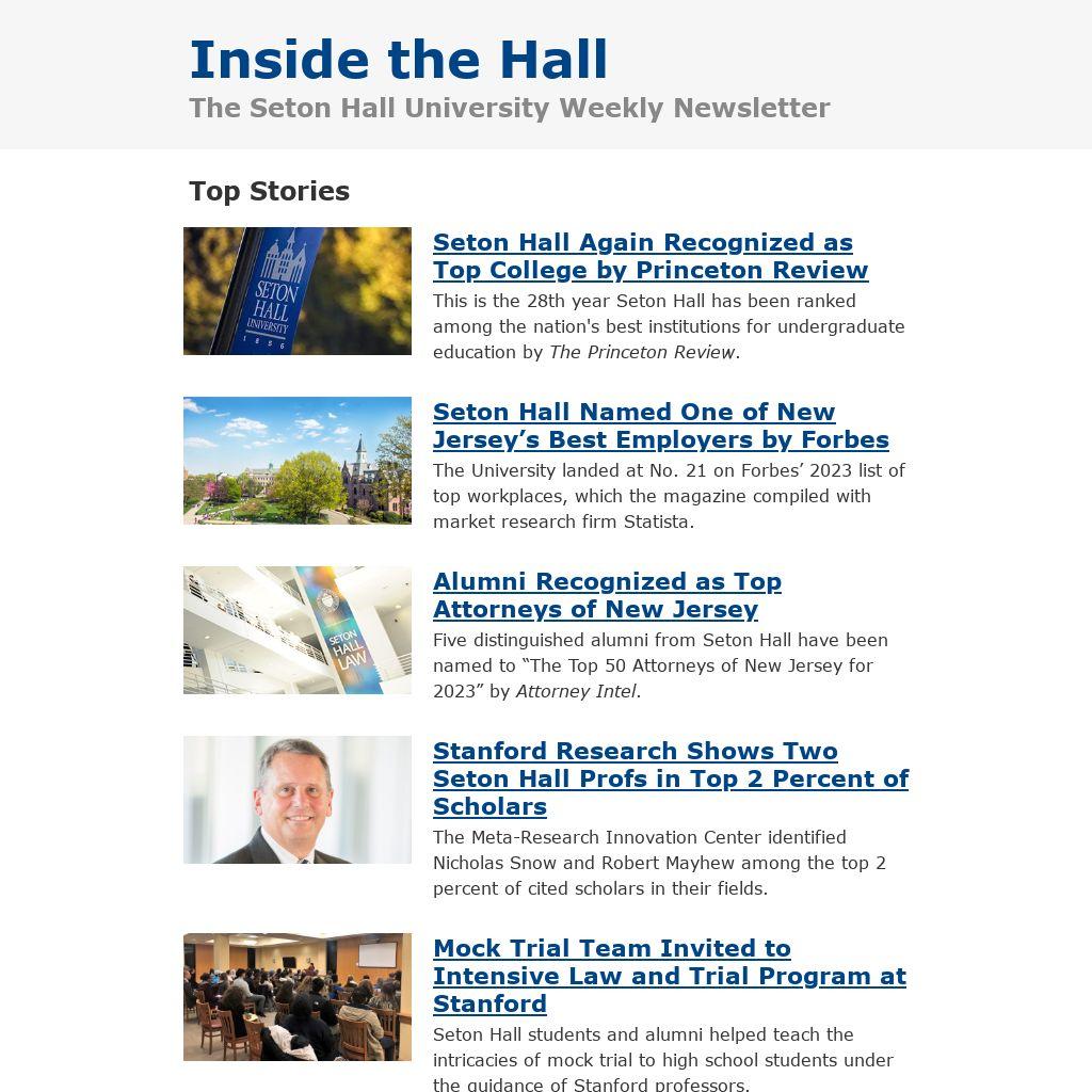 | This is the 28th year Seton Hall has been ranked among the nation's best institutions for undergraduate education by The Princeton Review.