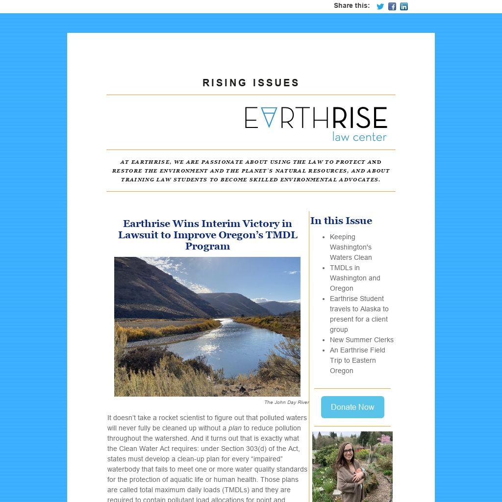 Earthrise currently represents Northwest Environmental Advocates (NWEA) in two separate but related cases against EPA seeking to improve and accelerate the TMDL programs in Oregon and Washington. In the Oregon case, Earthrise recently obtained an important early victory, successfully opposing EPA’s motion to dismiss and establishing some helpful caselaw along the way. In an opinion and order dated April 4, 2022, Judge Marco Hernandez of the District of Oregon made two important rulings, both of which we believe to be the first such holdings in the country: First, he held that EPA’s approval of Oregon’s recently submitted “TMDL Priorities and Schedule” was a stand-alone final agency action subject to judicial review under the Administrative Procedure Act—even where the claim does not attack EPA’s approval of Oregon’s impaired waters list. Second, he held that EPA had a nondiscretionary duty under its own regulation, 40 C.F.R. § 130.7(d)(1), to determine a state’s TMDL schedule, and that EPA’s failure to undertake that duty was subject to review under the Clean Water Act’s citizen suit provision. Judge Hernandez’s opinion clears the way for litigation on the merits of each of NWEA’s claims.