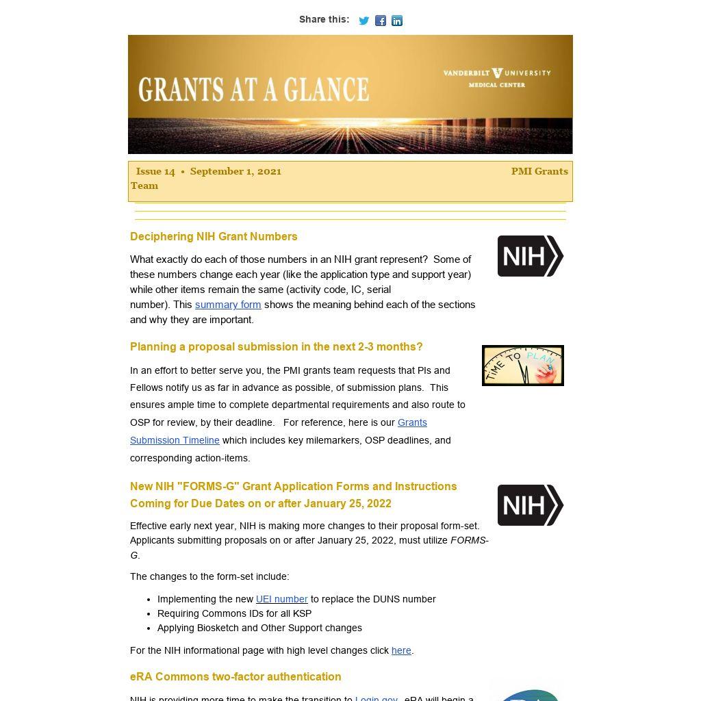 Effective early next year, NIH is making more changes to their proposal form-set. Applicants submitting proposals on or after January 25, 2022, must utilize FORMS-G.