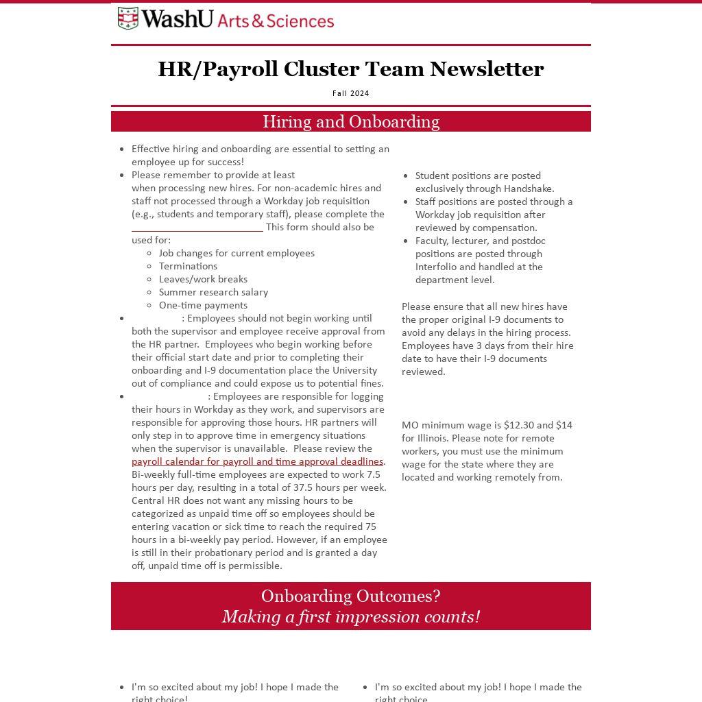 Our A&S HR webpage contains important forms and templates that can help streamline HR and payroll processes. Utilizing the available resources and forms is key to streamlining HR processes and ensuring efficiency. These tools provide valuable guidance, help reduce errors, and allow us to complete tasks accurately and on time.