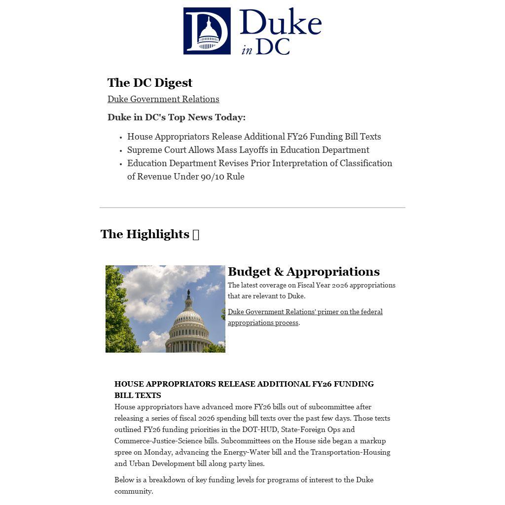 HOUSE APPROPRIATORS RELEASE ADDITIONAL FY26 FUNDING BILL TEXTS