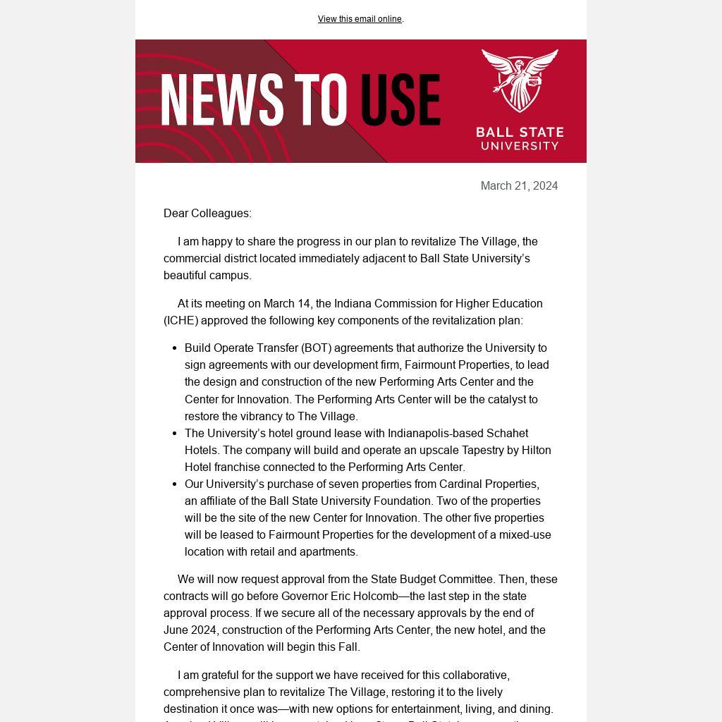 Copyright © 2024 Ball State University, All rights reserved. News and updates from Ball State's president.