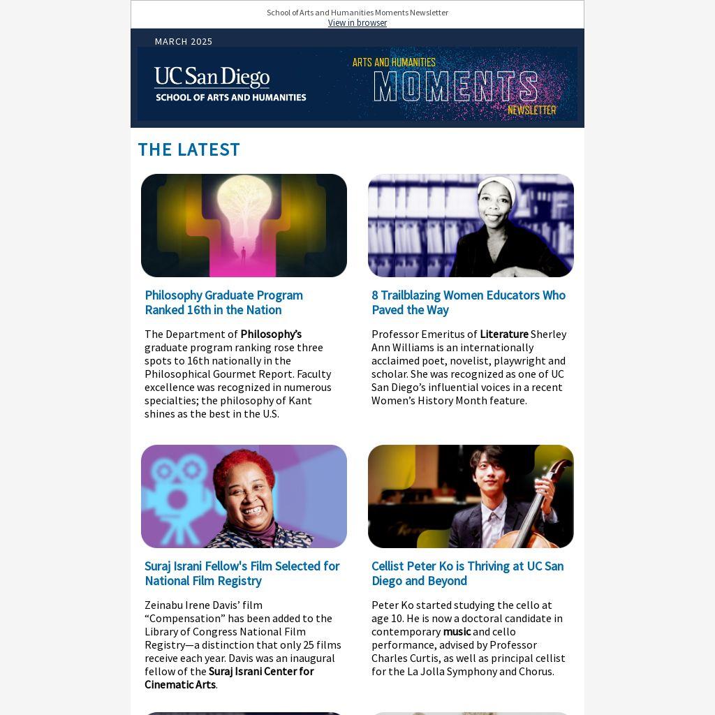 School of Arts and Humanities Moments Newsletter