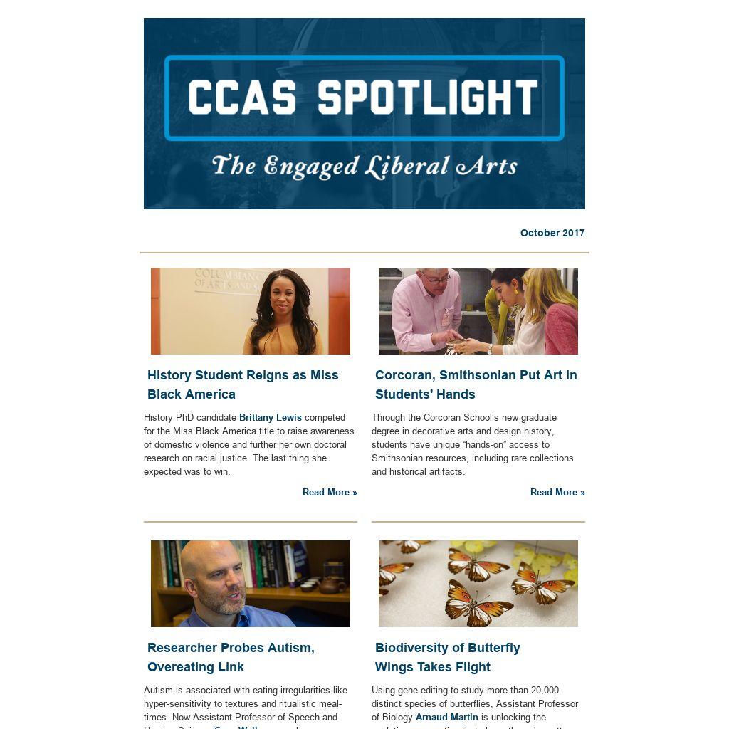 Columbian College's annual Arts & Sciences magazine, which hit alumni mailboxes last week, is now available online. Read all about the students, faculty and alumni who are making an impact through discovery, service and support. Send us your feedback at ccasnews@gwu.edu.