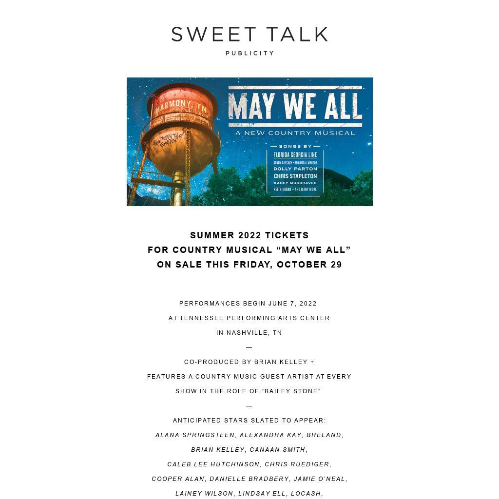 SUMMER 2022 TICKETS FOR COUNTRY MUSICAL “MAY WE ALL” ON SALE THIS FRIDAY, OCTOBER 29