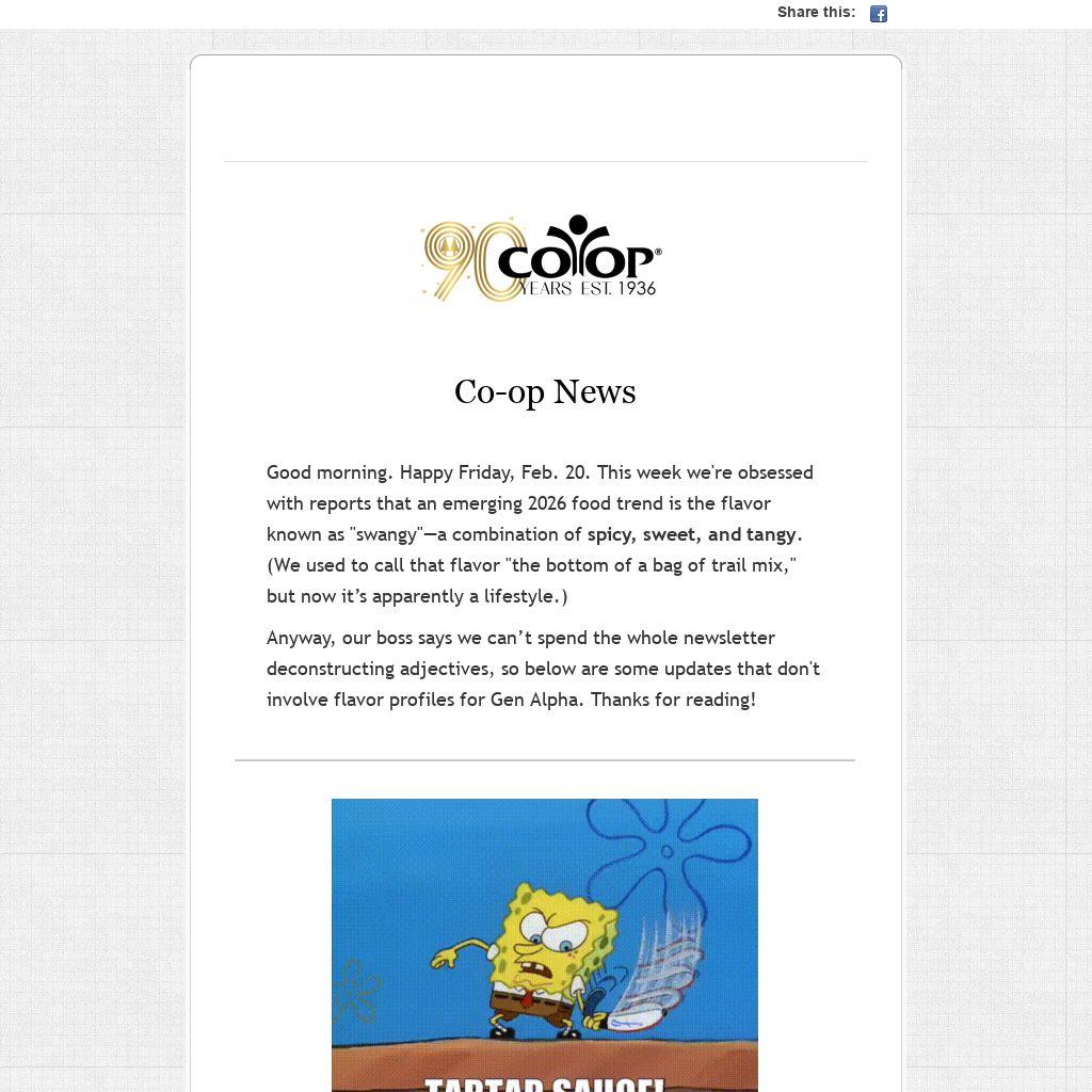 Good morning. Happy Friday, Feb. 20. This week we're obsessed with reports that an emerging 2026 food trend is the flavor known as "swangy"—a combination of spicy, sweet, and tangy. (We used to call that flavor "the bottom of a bag of trail mix," but now it’s apparently a lifestyle.)