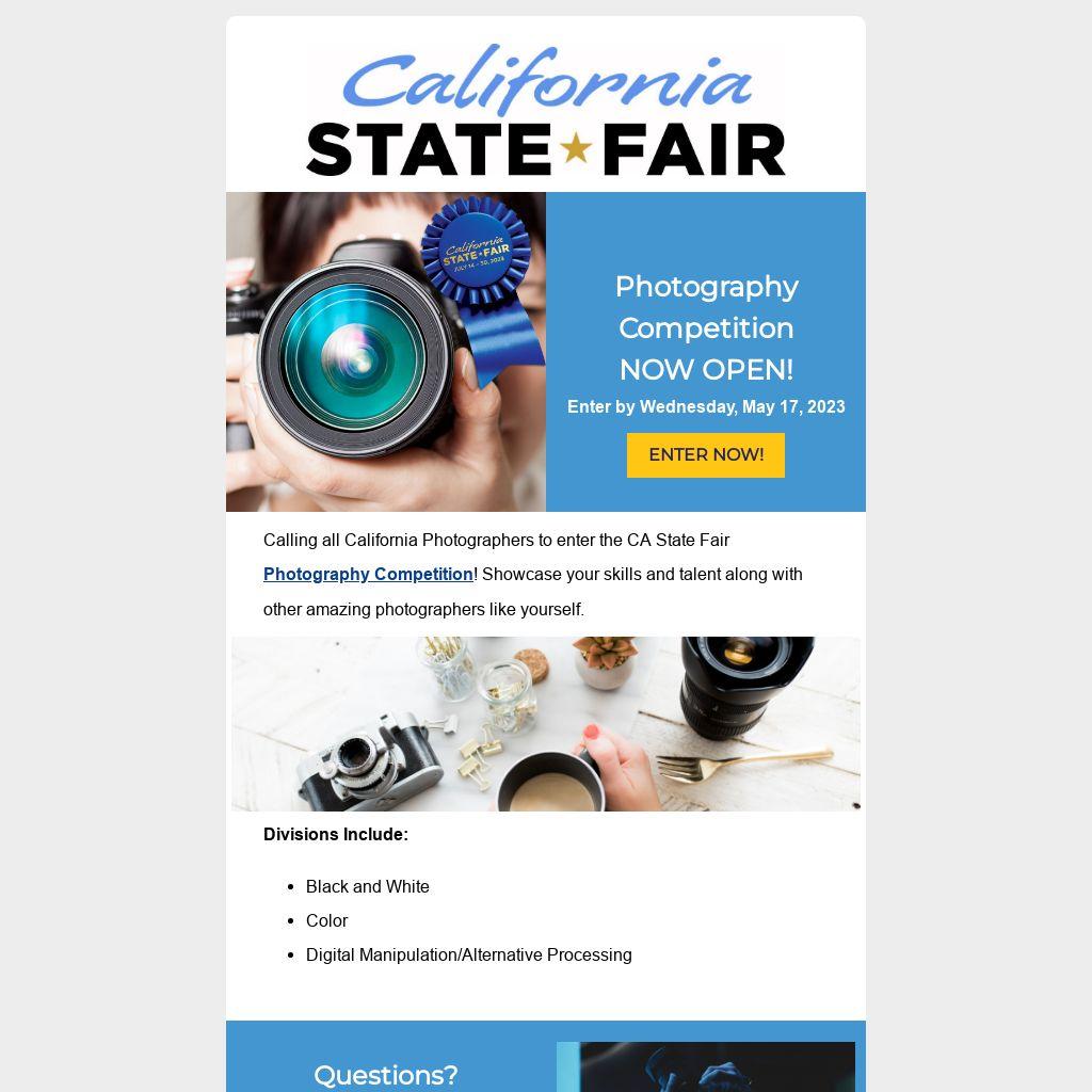 Calling all California Photographers to enter the CA State Fair Photography Competition! Showcase your skills and talent along with other amazing photographers like yourself.