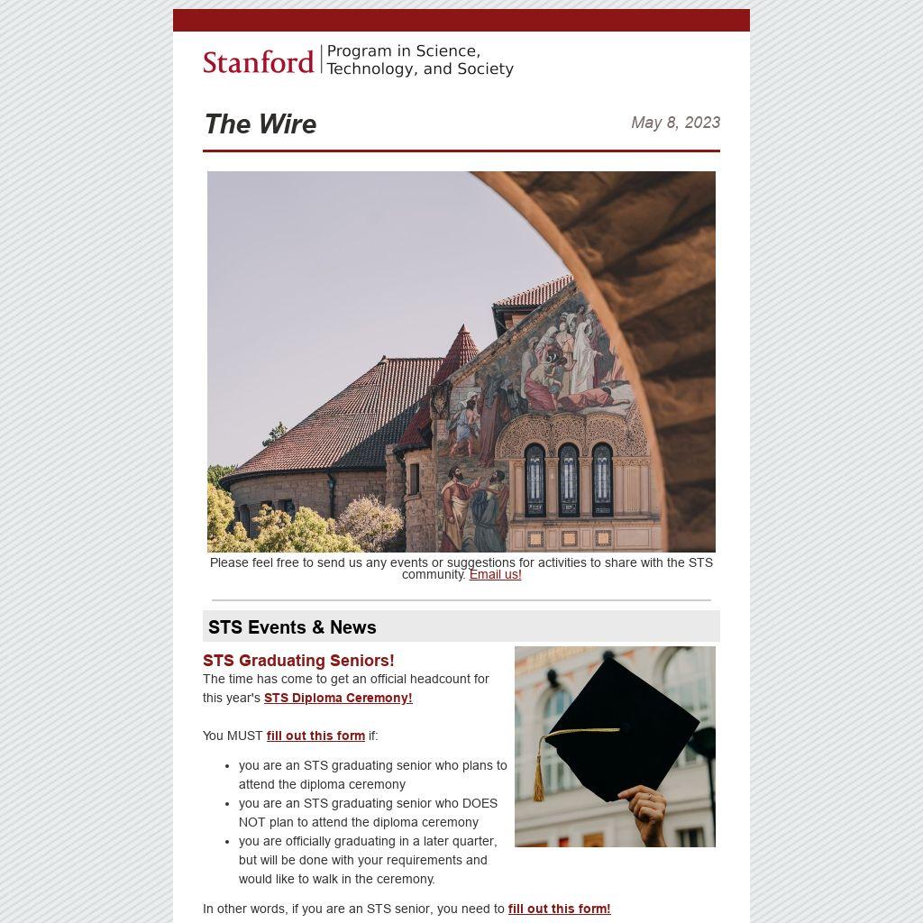 All STS seniors, please fill out this form by Friday, May 19, 2023. Please contact our STS SSO, Philip Gilbert, if you have any questions.
