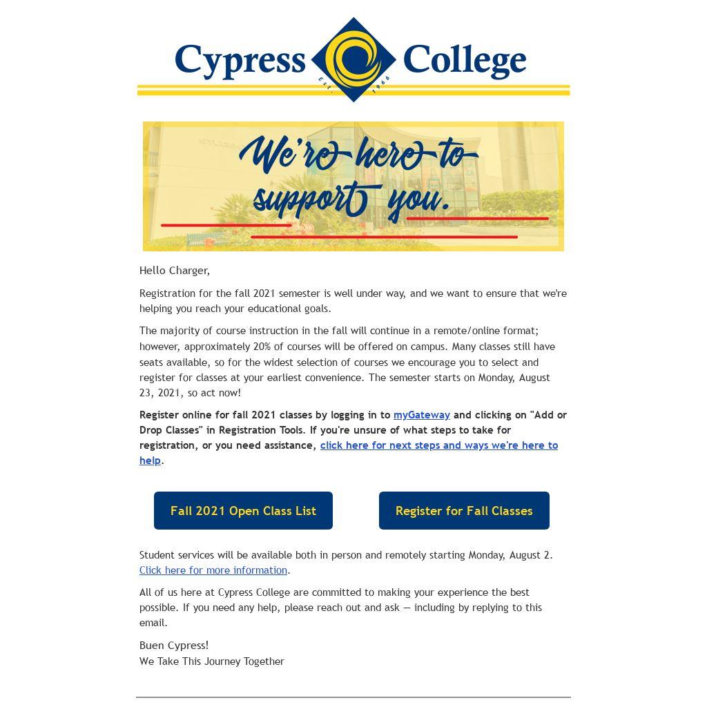 Registration for the fall 2021 semester is well under way, and we want to ensure that we're helping you reach your educational goals.