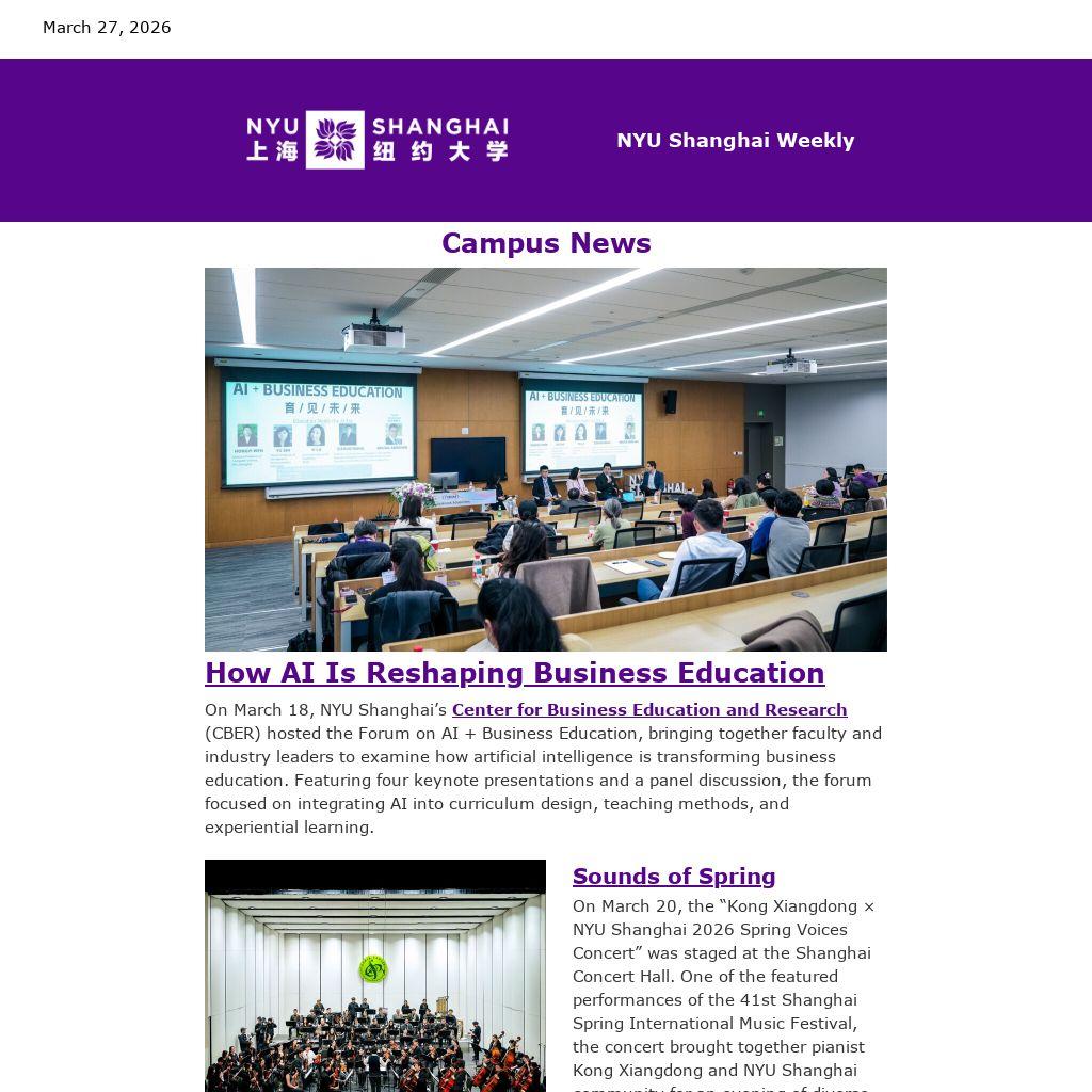 2025-2026 Sino-Foreign University Cup, held at University of Nottingham Ningbo China on March 14-15, with the Table Tennis, Menâs Soccer, Womenâs Volleyball, and Tennis teams performing particularly well. So far, DKU and UNNC are tied with 40 points each, with NYU Shanghai coming in 3rd. The Violets will have their chance at redemption next month on April 18-19 in the third and final SFUC leg, hosted at NYU Shanghai.