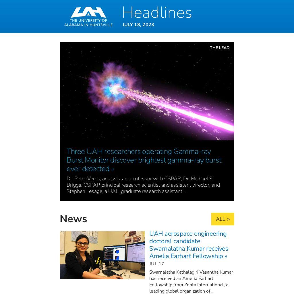 Three UAH researchers operating Gamma-ray Burst Monitor discover brightest gamma-ray burst ever detected »