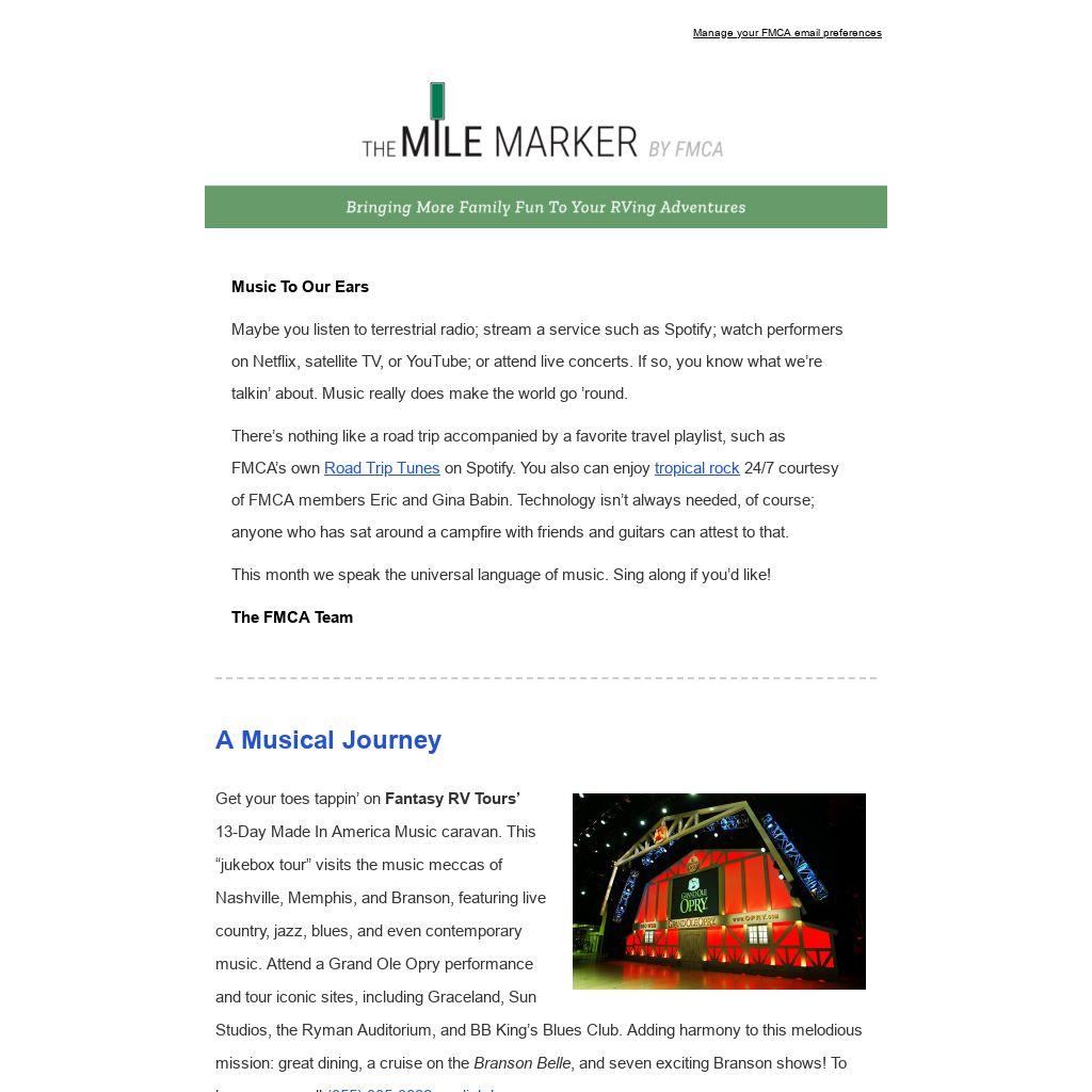 If you’re musically inclined, you might enjoy the camaraderie of FMCA’s own Frustrated Maestros. Nine geographically based Frustrated Maestros chapters are in existence. Find the one nearest you here.