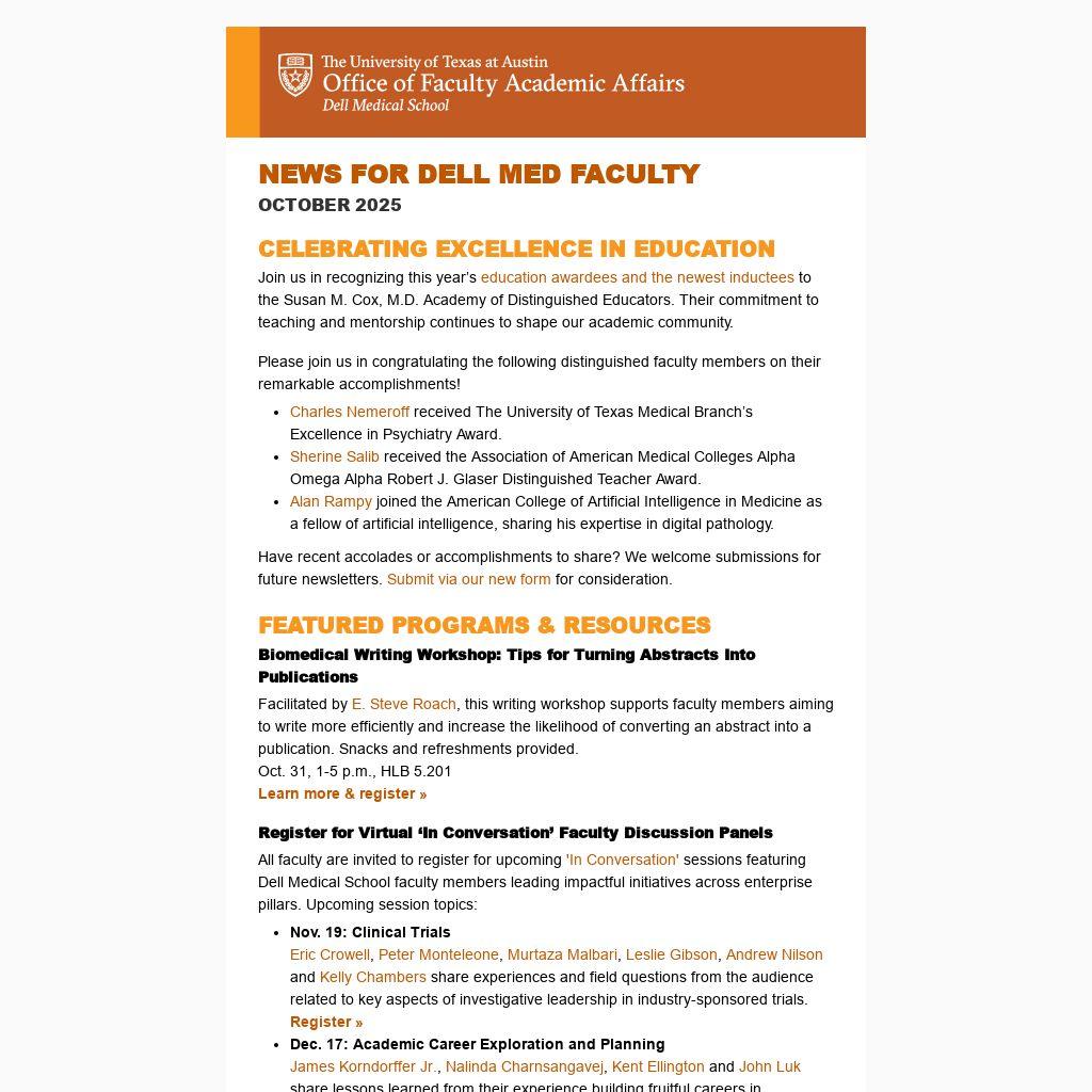 NEWS FOR DELL MED FACULTY |