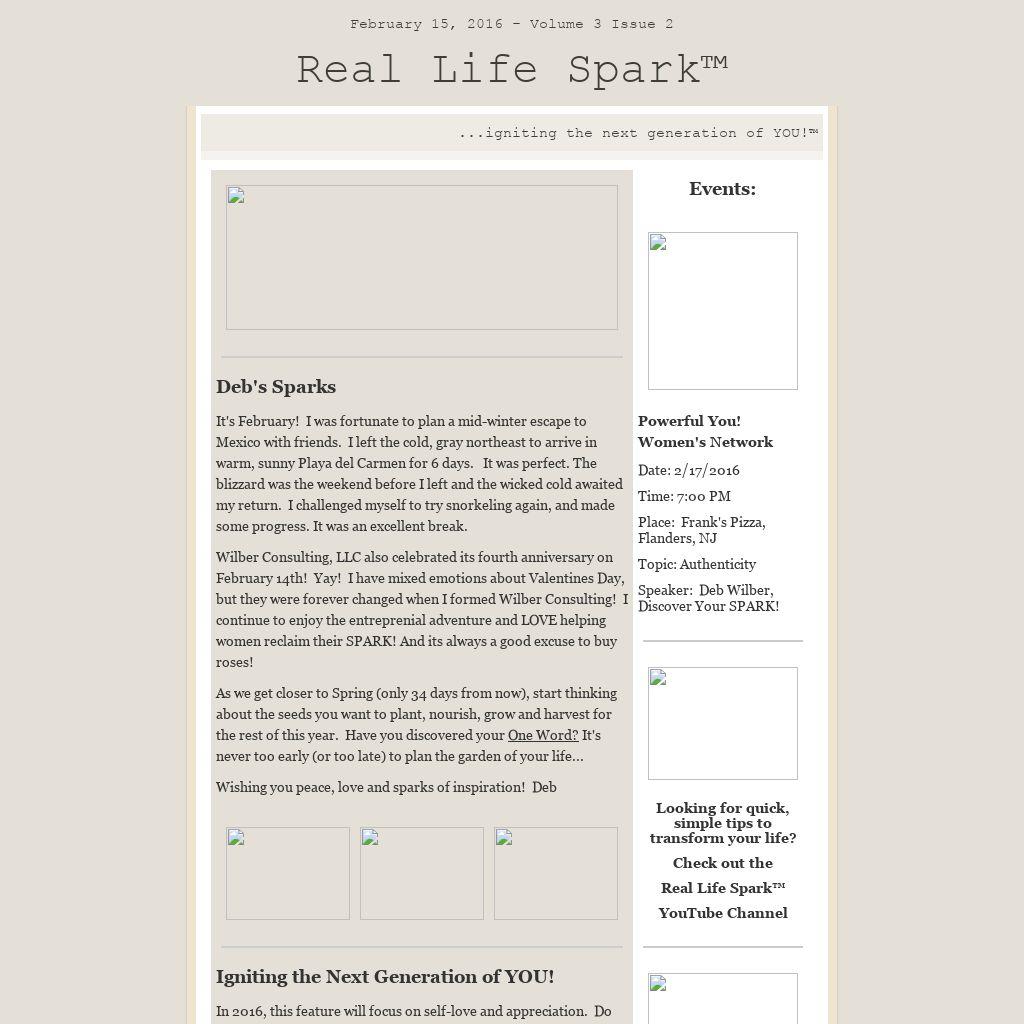 We have the opportunity to reinvent ourselves every day. The Real Life Spark tagline and the title of this section Igniting the Next Generation of YOU! embodies this concept.