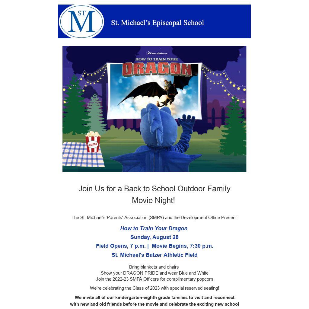We invite all of our kindergarten-eighth grade families to visit and reconnect with new and old friends before the movie and celebrate the exciting new school year!