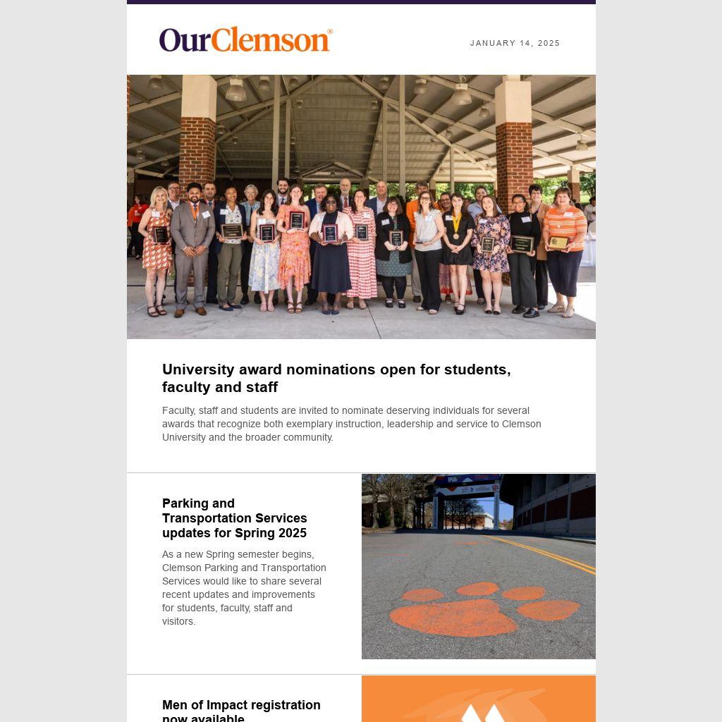 As a new Spring semester begins, Clemson Parking and Transportation Services would like to share several recent updates and improvements for students, faculty, staff and visitors.