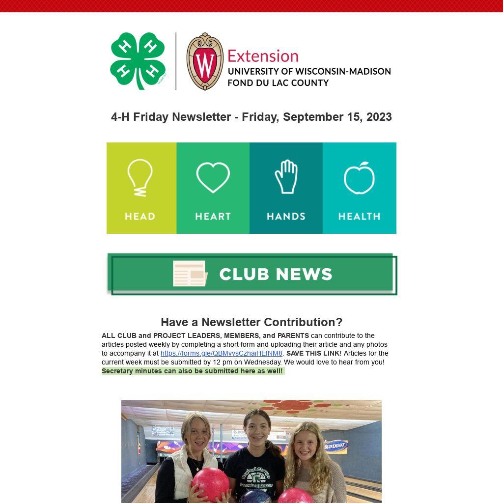 New families will start receiving new family newsletters at the end of September and will be added to the electronic newsletters as soon as possible after being approved in 4-H online.