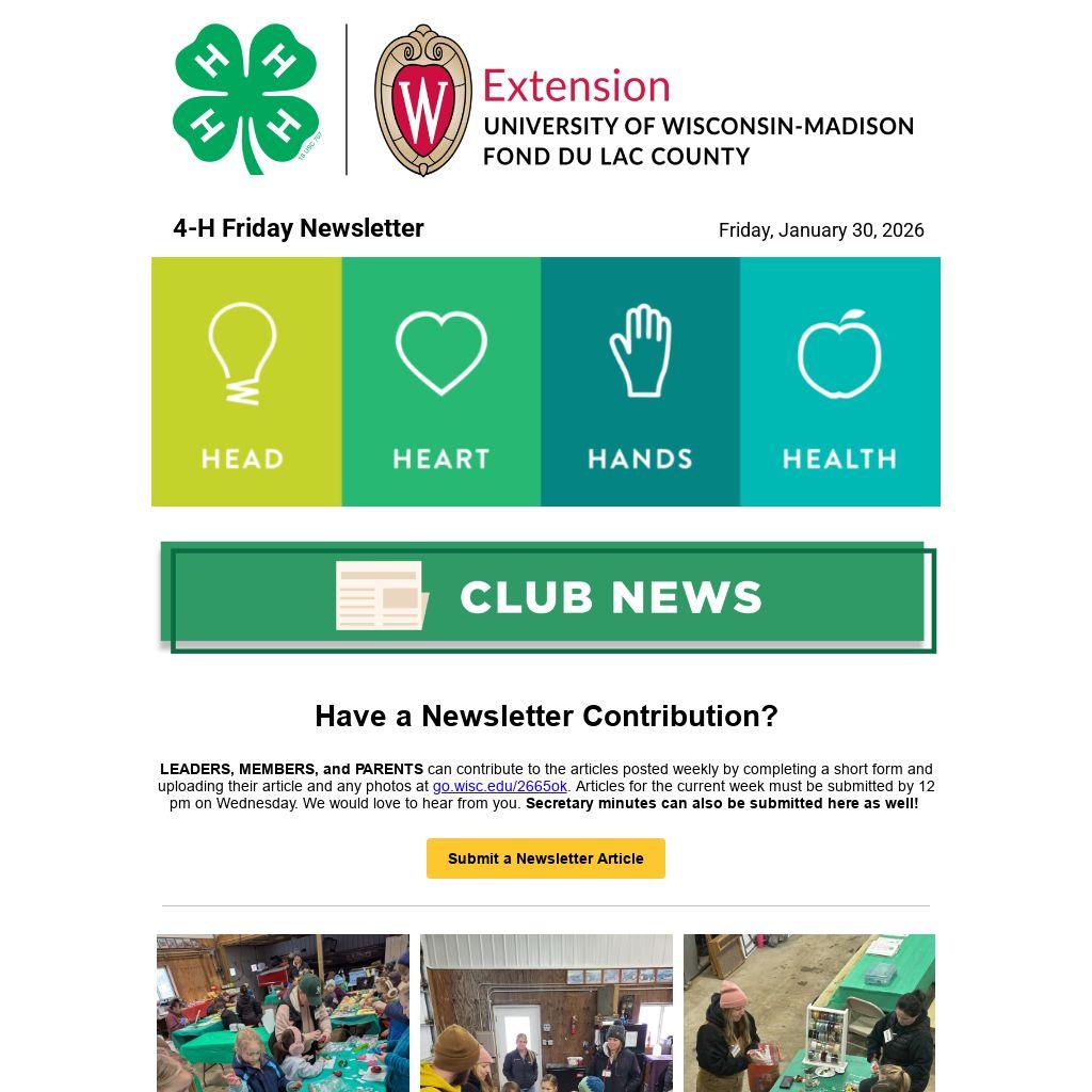 LEADERS, MEMBERS, and PARENTS can contribute to the articles posted weekly by completing a short form and uploading their article and any photos at go.wisc.edu/2665ok. Articles for the current week must be submitted by 12 pm on Wednesday. We would love to hear from you. Secretary minutes can also be submitted here as well!