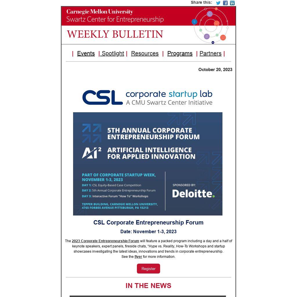 CSL Corporate Entrepreneurship Forum Date: November 1-3, 2023