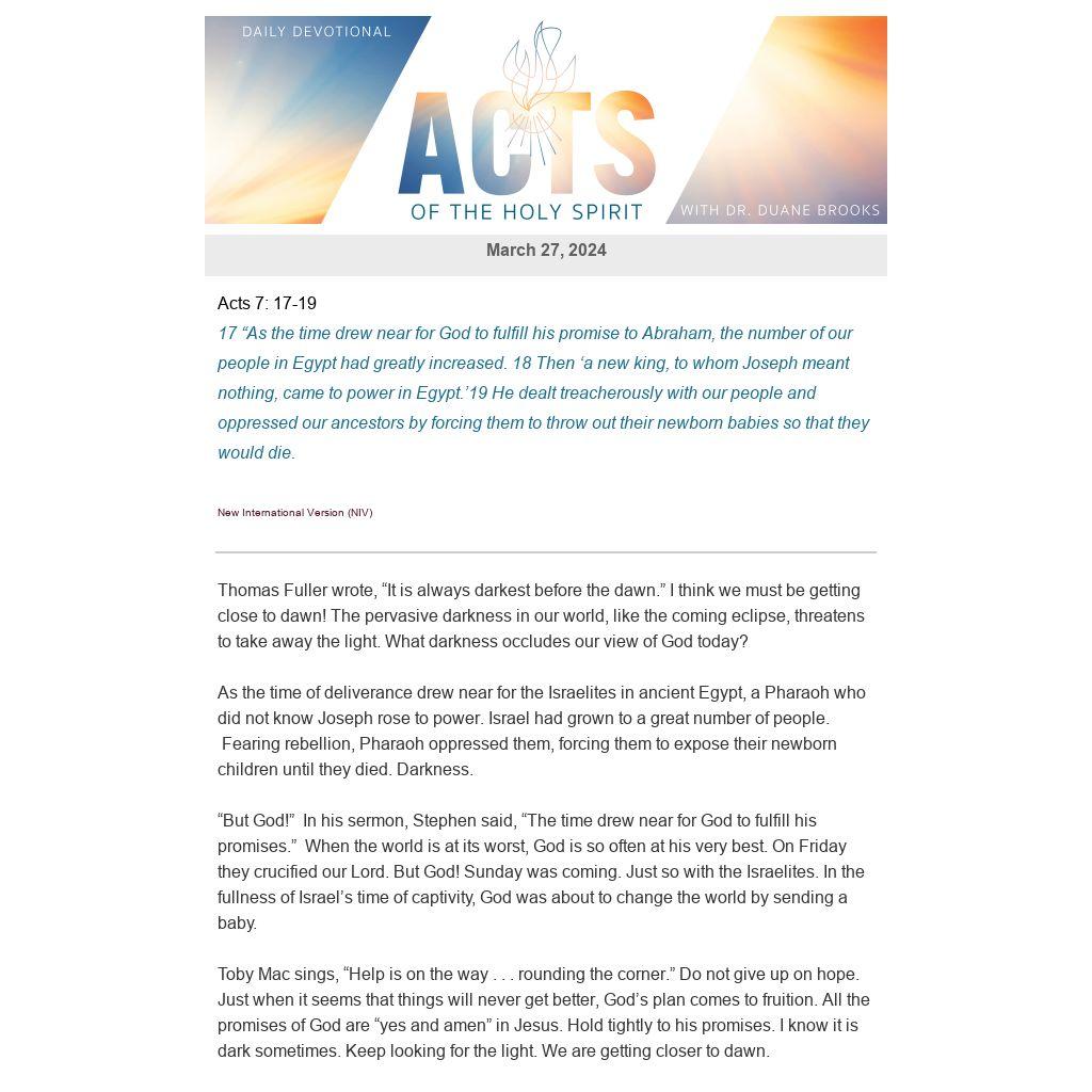 “But God!” In his sermon, Stephen said, “The time drew near for God to fulfill his promises.” When the world is at its worst, God is so often at his very best. On Friday they crucified our Lord. But God! Sunday was coming. Just so with the Israelites. In the fullness of Israel’s time of captivity, God was about to change the world by sending a baby.