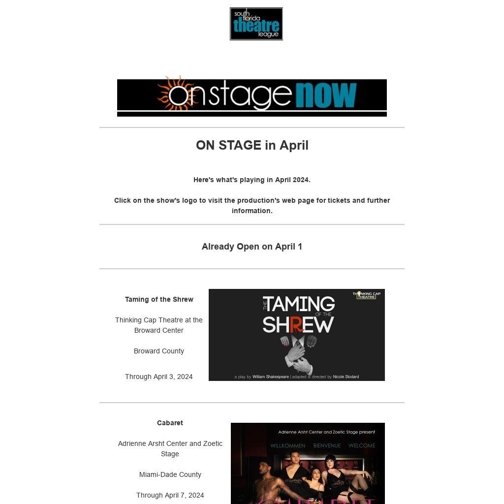 This email blast and other programs of the South Florida Theatre League are made possible with the support of Miami-Dade County Department of Cultural Affairs and the Cultural Affairs Council, the Miami-Dade County Mayor and Board of County Commissioners.