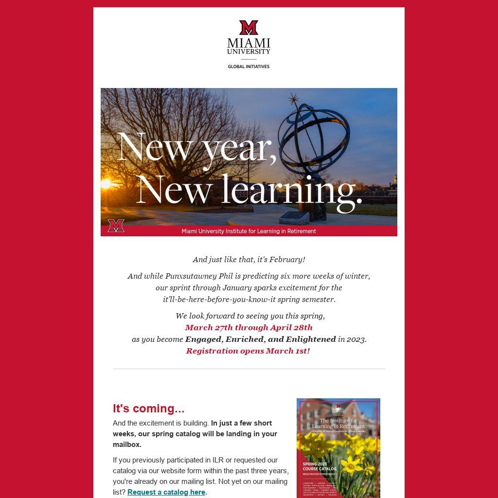 And while Punxsutawney Phil is predicting six more weeks of winter, our sprint through January sparks excitement for the it'll-be-here-before-you-know-it spring semester.