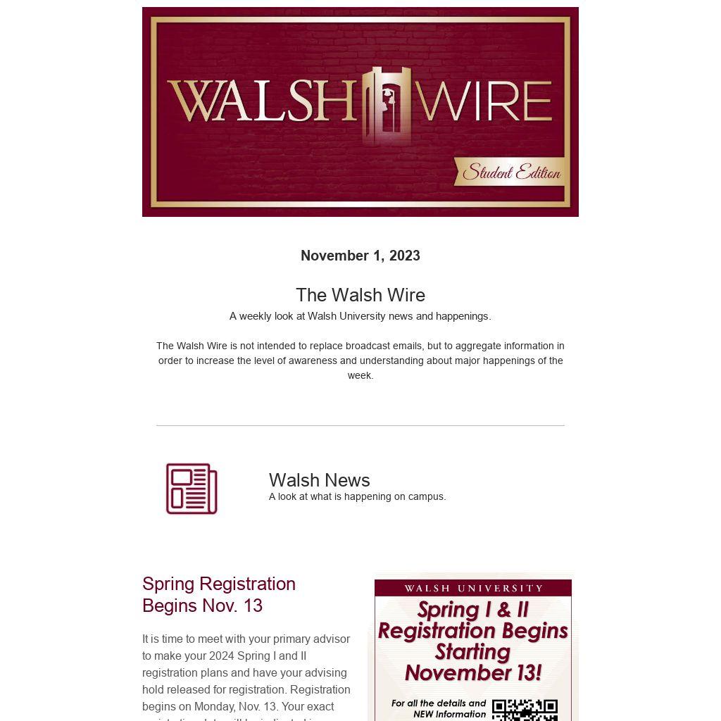 The Walsh Wire is not intended to replace broadcast emails, but to aggregate information in order to increase the level of awareness and understanding about major happenings of the week.