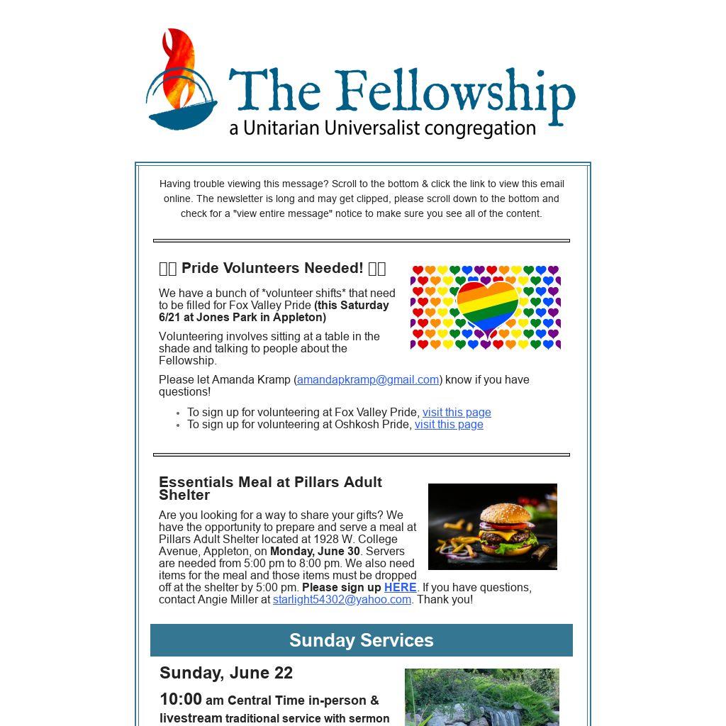 â˘Â Share the Plate: In June we share the plate with Fellowship Justice Action Ministry Teams (JAMs): Essentials, Gender Justice, Green Sanctuary, UU the Vote, and ESTHER.