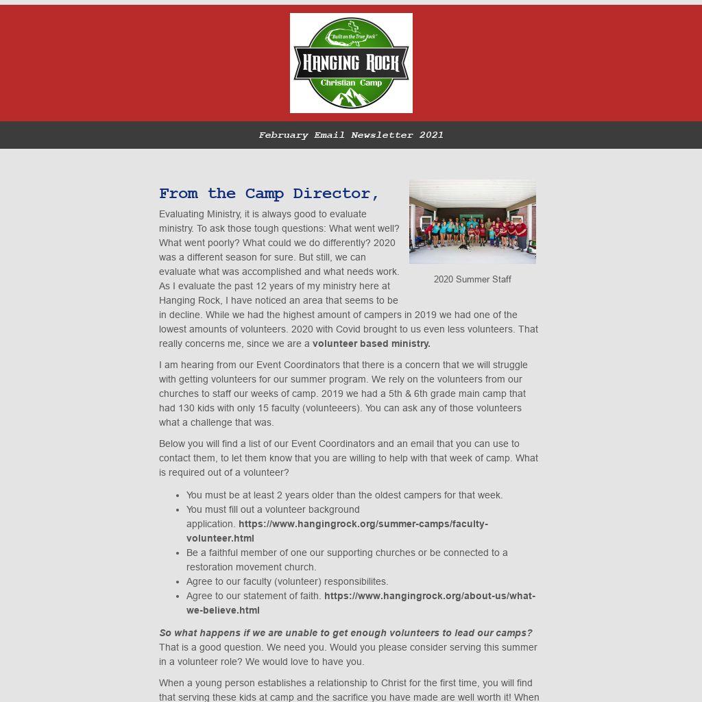 1st & 2nd Grade Overnight - Event Coordinator: - HRCA Staff - garybaker@hangingrock.org