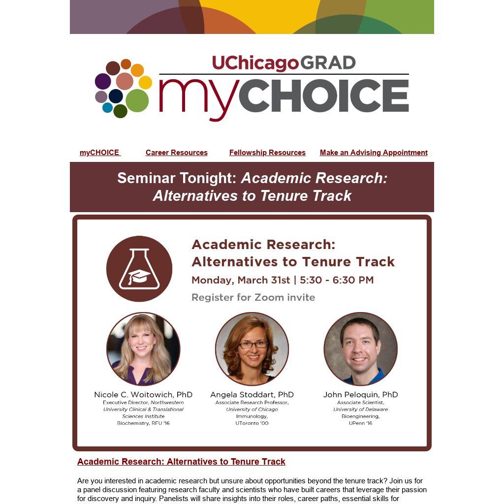Seminar Tonight: Academic Research: Alternatives to Tenure Track |