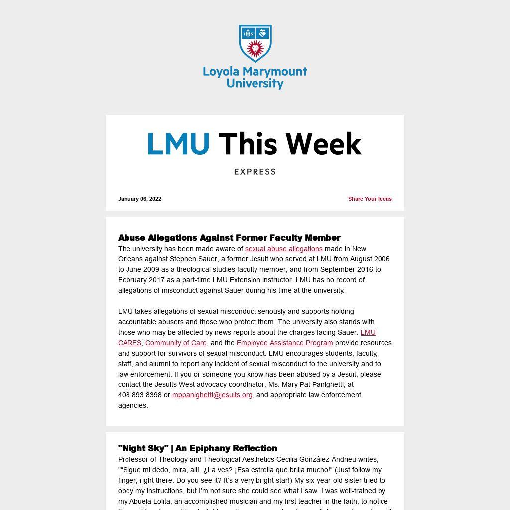 Completion of the Loyola Boulevard gate maintenance project was delayed due to winter weather, and the gate will remain closed to all inbound and outbound vehicular traffic through Jan. 14. During this time, students, faculty, and staff who walk or bike may continue to access the gate. All pedestrians and cyclists should utilize the sidewalk and be prepared to tap their OneCard when coming onto campus. Thank you for your patience and understanding.