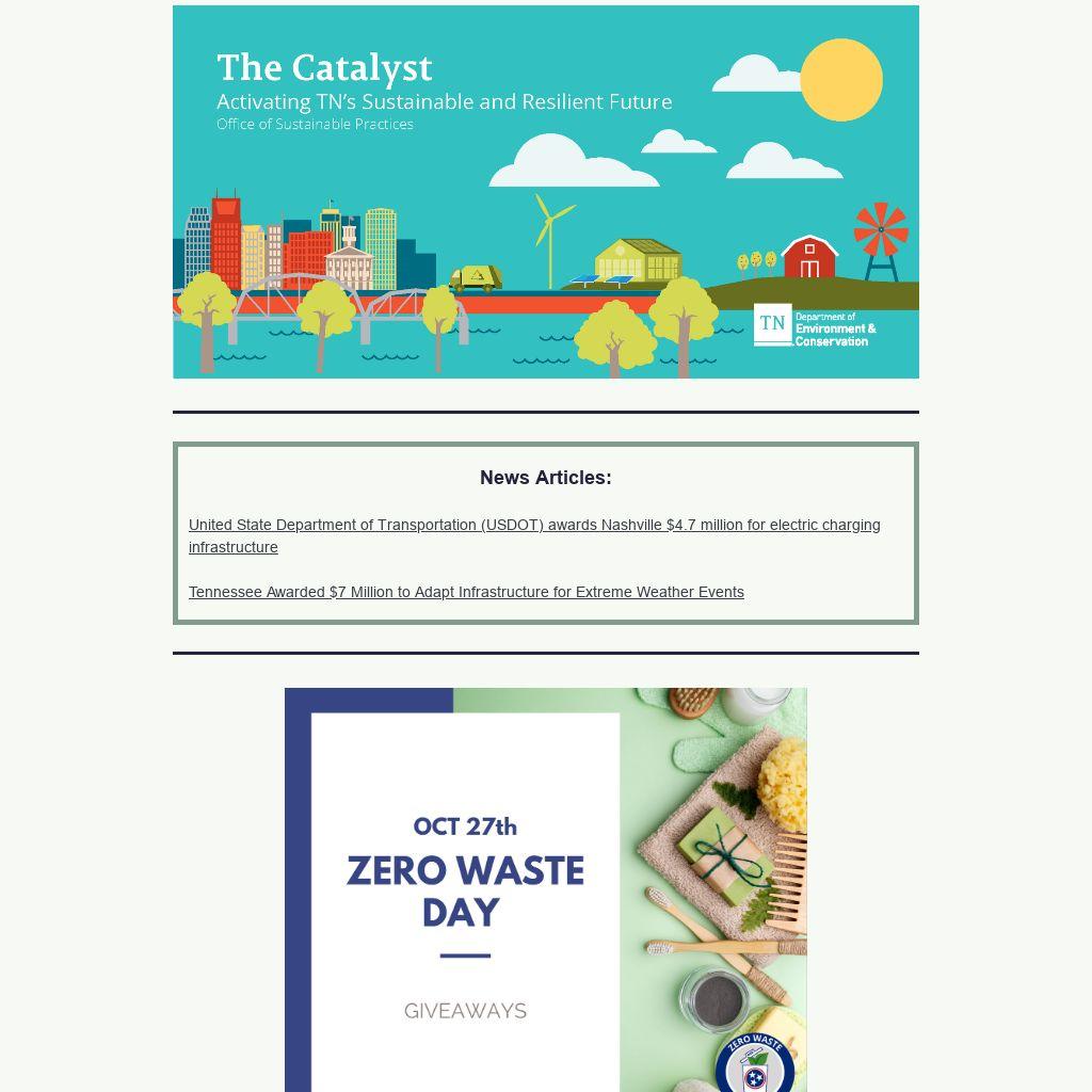 October 27th marks Zero Waste Day, a statewide initiative aimed at raising awareness about the importance of reducing, reusing, and recycling. This day is a crucial opportunity to encourage Tennesseans to adopt sustainable practices and minimize their environmental impact.
