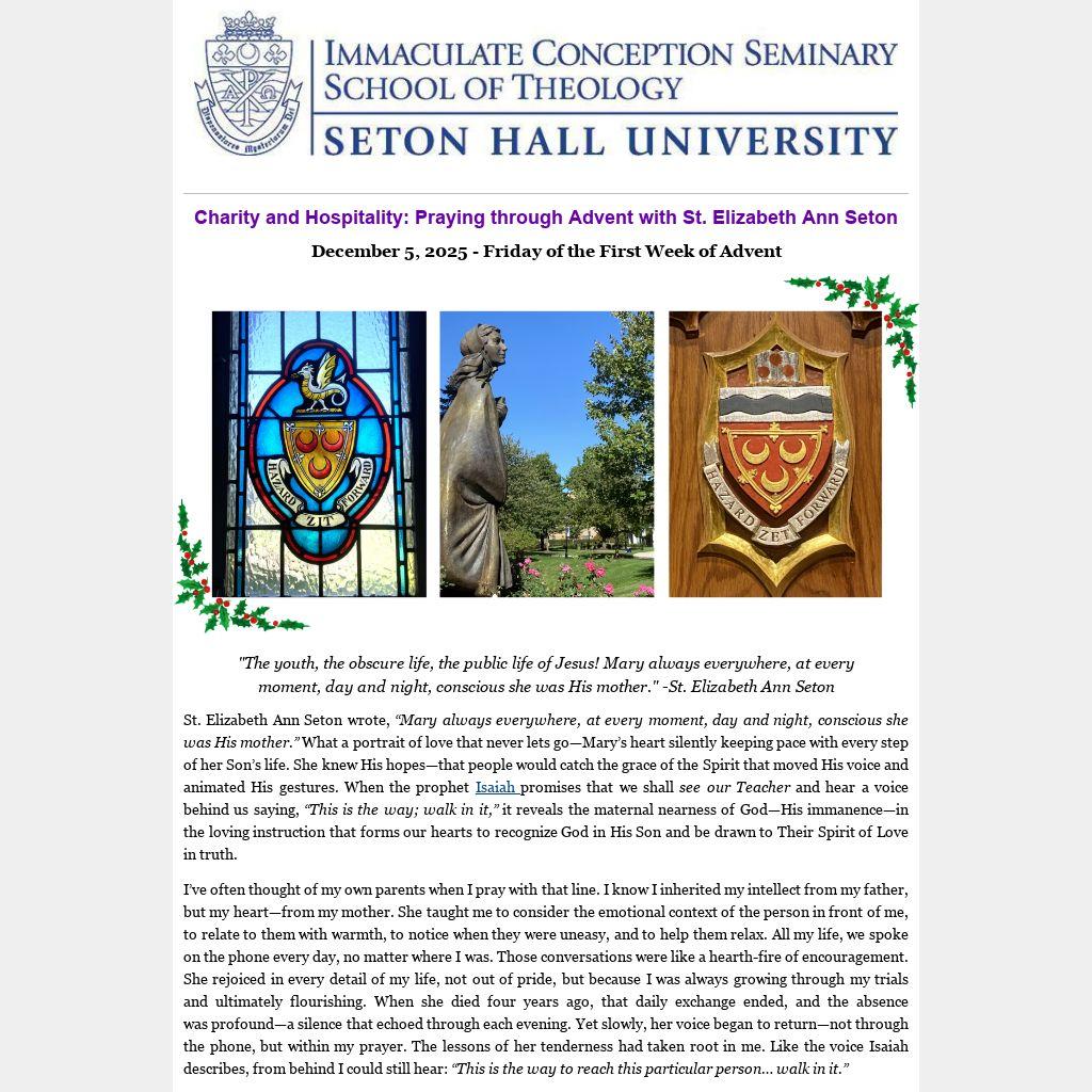 The Teacher Isaiah speaks of is the Holy Spirit. Advent calls us to listen for that divine Teacher within, who speaks through love remembered and love renewed. Charity and hospitality begin there, in hearts prepared to host the Holy Ghost—the illuminating Divine Guest—God’s gift to us all in Jesus Christ. As Mary and Mother Seton show us, to welcome Christ is to let the Spirit form in us that same maternal warmth which teaches others, quietly and faithfully, how to walk in the light of His gracious intuitions.