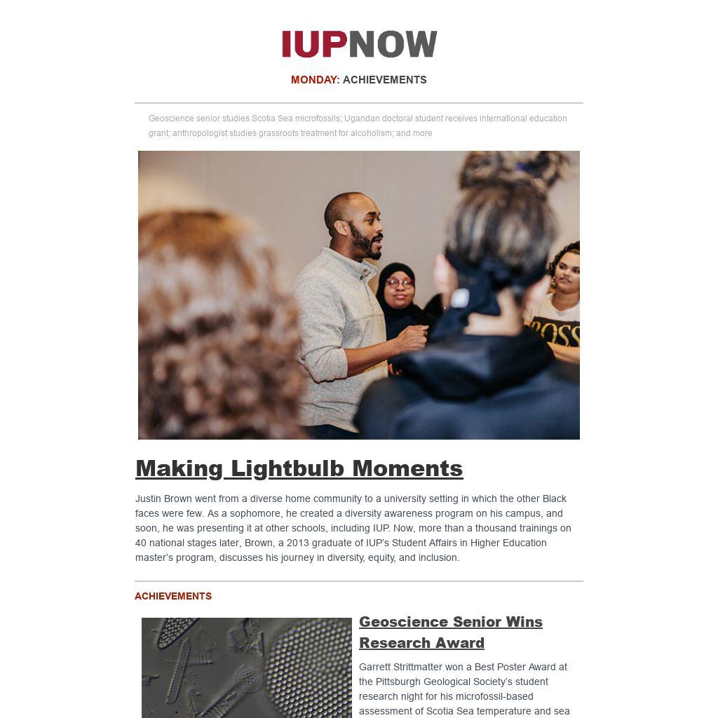 Justin Brown went from a diverse home community to a university setting in which the other Black faces were few. As a sophomore, he created a diversity awareness program on his campus, and soon, he was presenting it at other schools, including IUP. Now, more than a thousand trainings on 40 national stages later, Brown, a 2013 graduate of IUP’s Student Affairs in Higher Education master’s program, discusses his journey in diversity, equity, and inclusion.