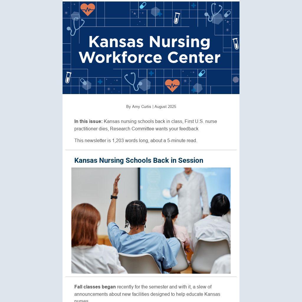 You received this email because you signed up for newsletters from the Kansas Nursing Workforce Center. See below for unsubscribe details.