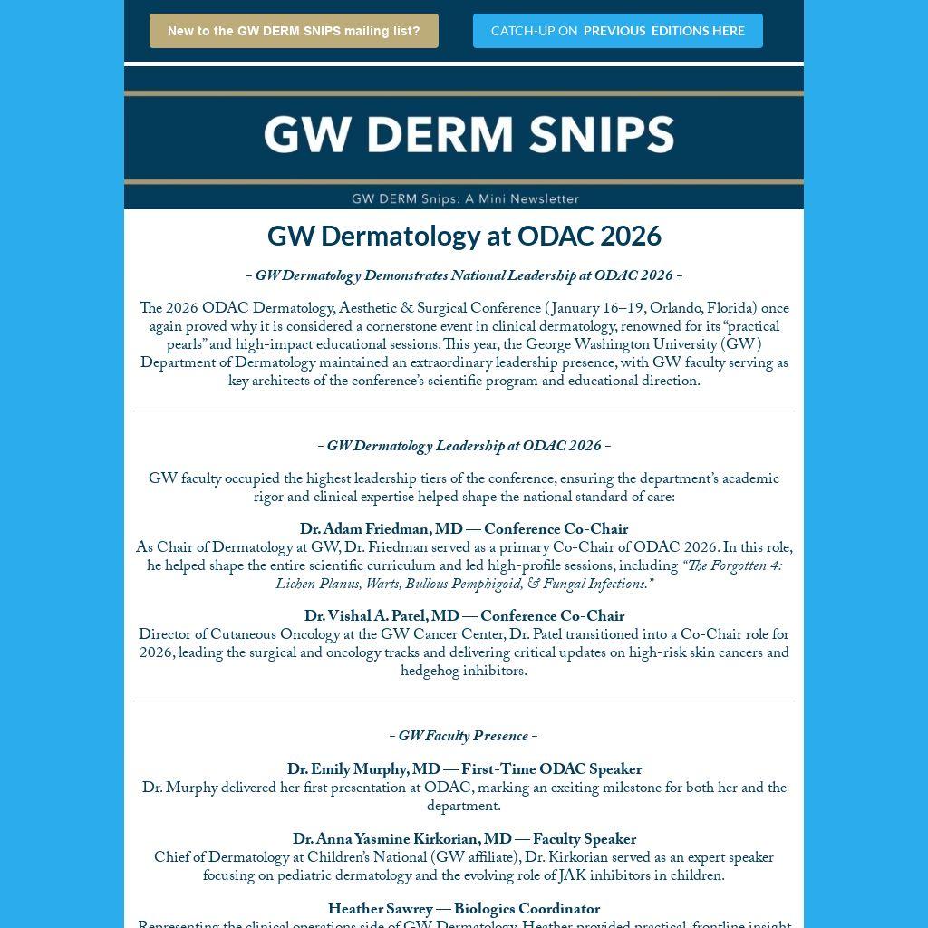 - GW Dermatology Demonstrates National Leadership at ODAC 2026 -
