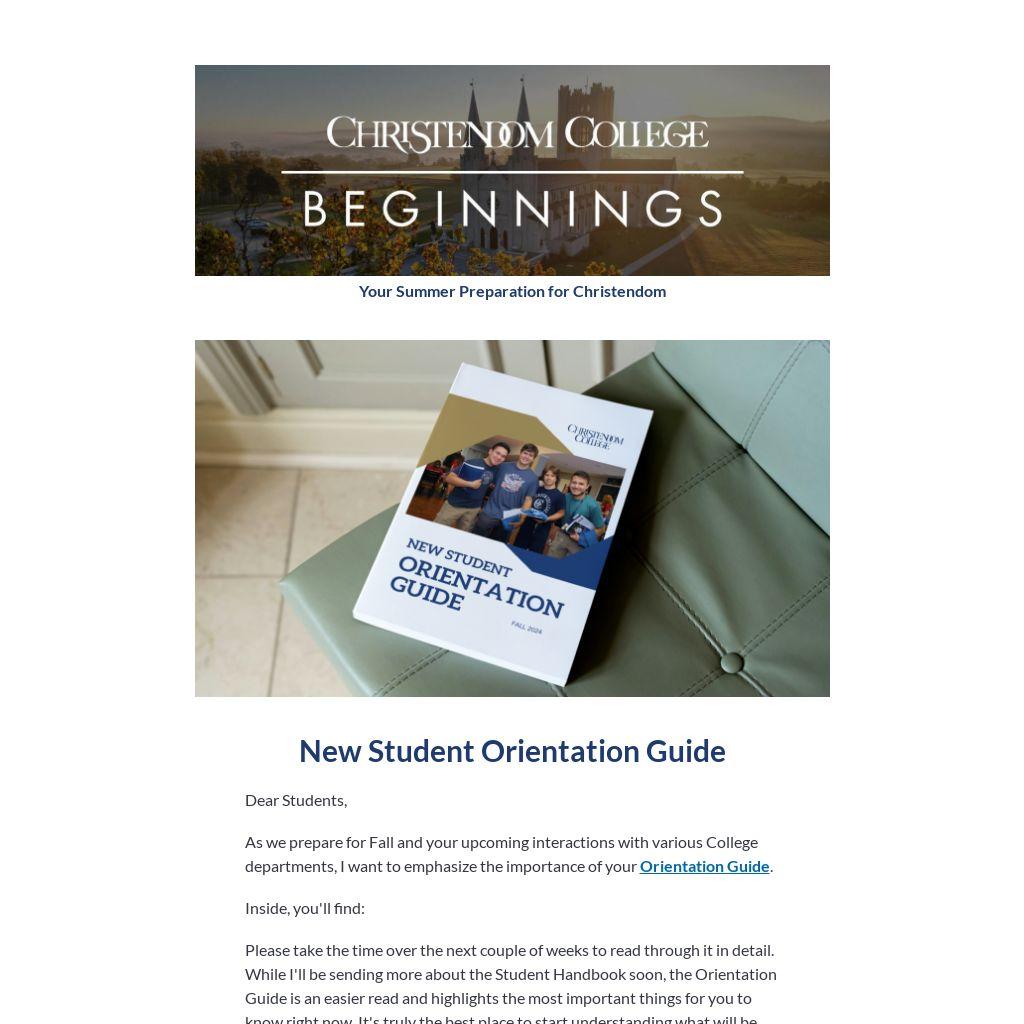 As we prepare for Fall and your upcoming interactions with various College departments, I want to emphasize the importance of your Orientation Guide.