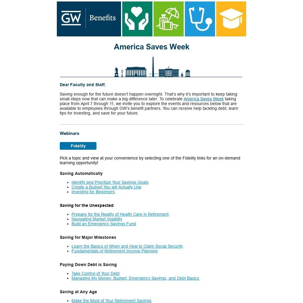 Retirement consultants from Fidelity and TIAA are available by appointment for assistance enrolling in the GW retirement plans, understanding the plans and available investments, and creating your savings plan. If you need help preparing to meet with a financial consultant, check out Tips for Working with a Financial Professional prior to booking an appointment here.