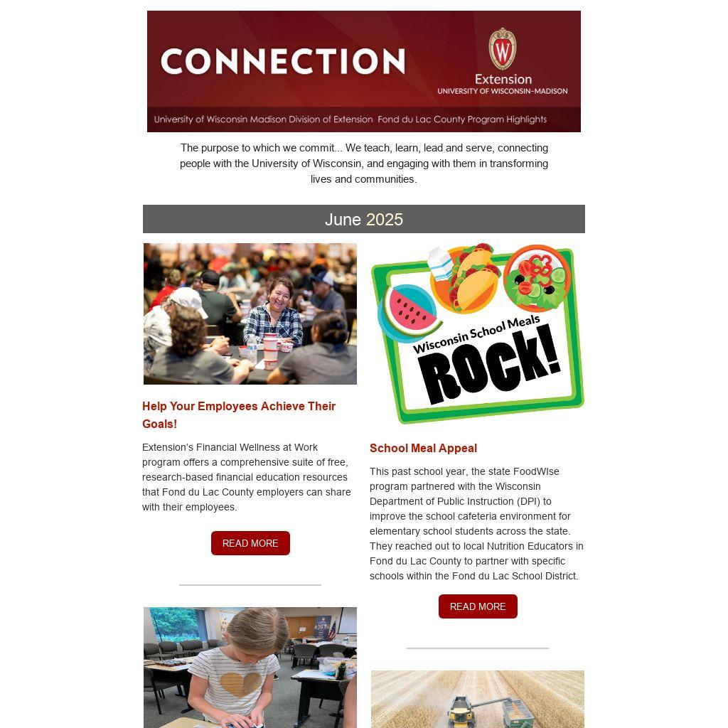 UW-Madison Division of Extension Fond du Lac County is dedicated to serving our local community. Each week on our Facebook page we share the ways in which we connect the people of Fond du Lac County to University resources and knowledge.