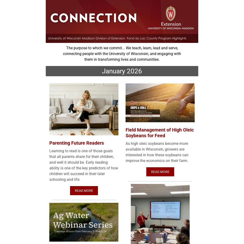 Please join us in congratulating Noah as she has accepted an offer to become the next Extension Community Development Educator in Dane County. Her last day in Fond du Lac County was January 24th, but you may still contact her after that date at noah.reif@wisc.edu. Thank you Noah for your commitment to the Fond du Lac community and Extension Office. Best wishes in Dane County!
