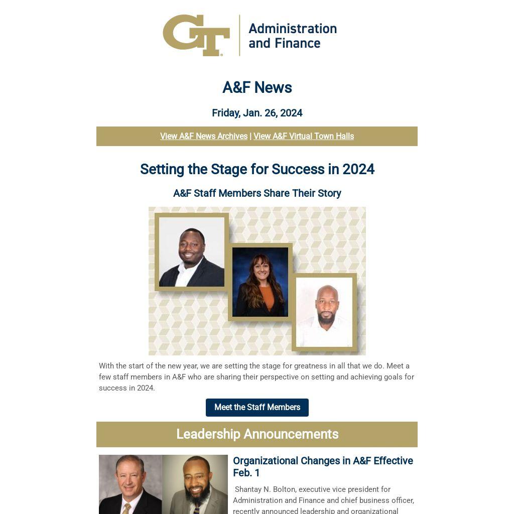 Join us for an A&F Town Hall on Tuesday, Jan. 30, from 2 to 3 p.m. To kick off 2024, this will be a hybrid town hall, and we hope to see you in person.