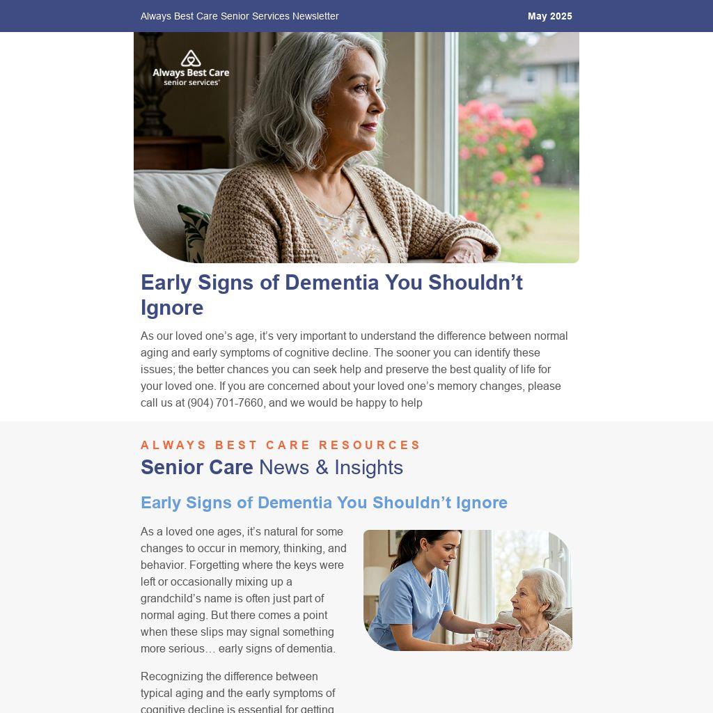 As our loved one’s age, it’s very important to understand the difference between normal aging and early symptoms of cognitive decline. The sooner you can identify these issues; the better chances you can seek help and preserve the best quality of life for your loved one. If you are concerned about your loved one’s memory changes, please call us at (904) 701-7660, and we would be happy to help