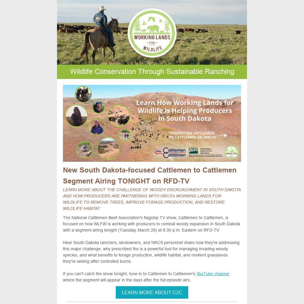 The National Cattlemen Beef Association's flagship TV show, Cattlemen to Cattlemen, is focused on how WLFW is working with producers to combat woody expansion in South Dakota with a segment airing tonight (Tuesday, March 28) at 8:30 p.m. Eastern on RFD-TV.