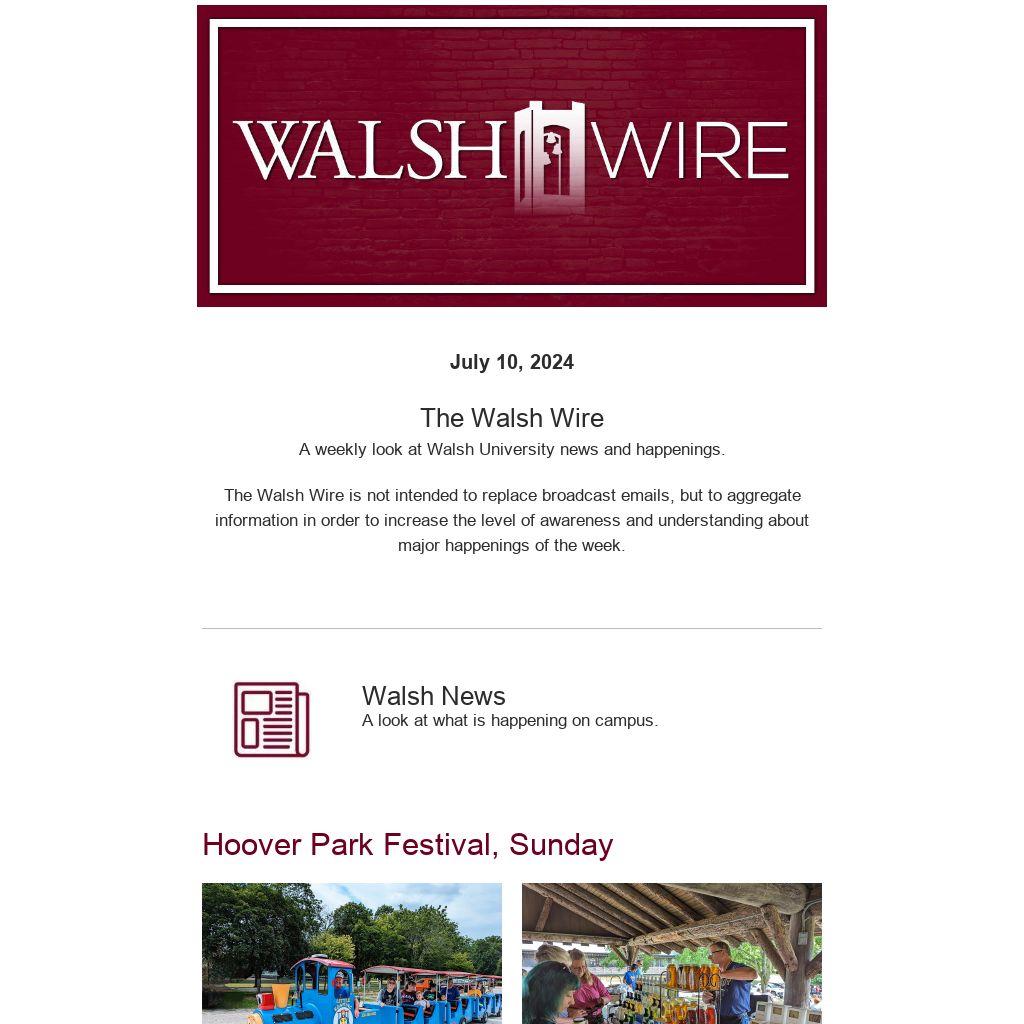 The Walsh Wire is not intended to replace broadcast emails, but to aggregate information in order to increase the level of awareness and understanding about major happenings of the week.