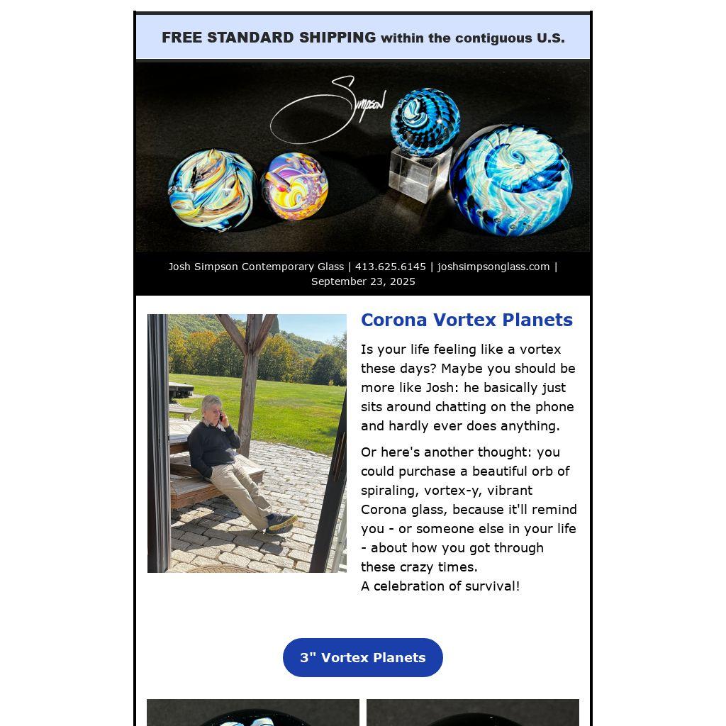 Or here's another thought: you could purchase a beautiful orb of spiraling, vortex-y, vibrant Corona glass, because it'll remind you - or someone else in your life - about how you got through these crazy times.