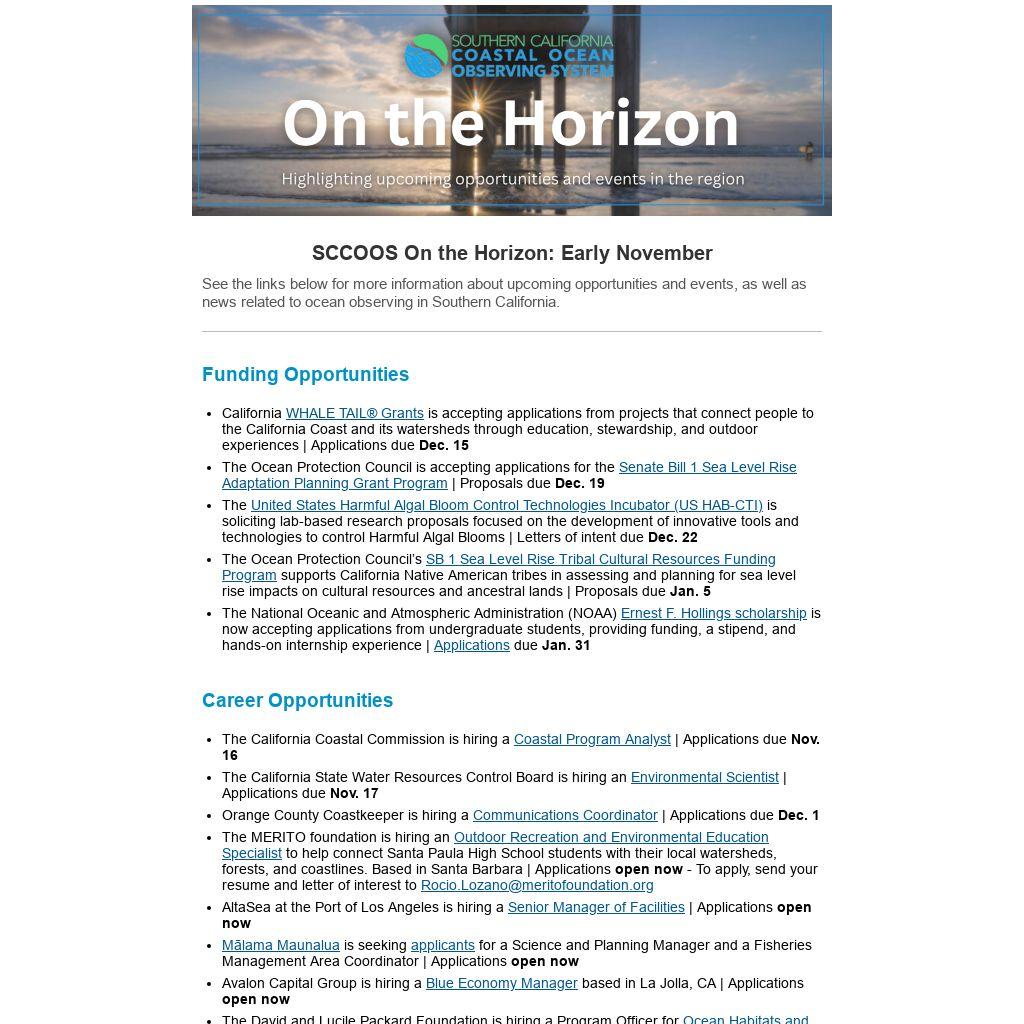 See the links below for more information about upcoming opportunities and events, as well as news related to ocean observing in Southern California.
