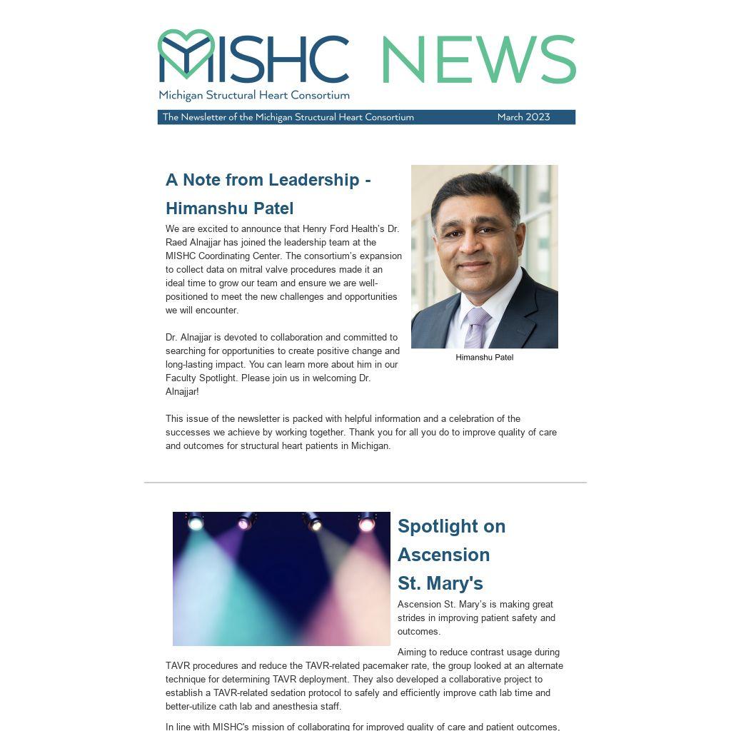 We are excited to announce that Henry Ford Health’s Dr. Raed Alnajjar has joined the leadership team at the MISHC Coordinating Center. The consortium’s expansion to collect data on mitral valve procedures made it an ideal time to grow our team and ensure we are well-positioned to meet the new challenges and opportunities we will encounter.