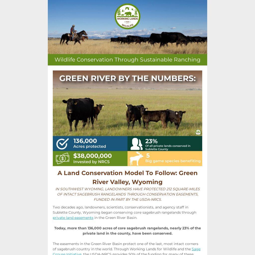 Two decades ago, landowners, scientists, conservationists, and agency staff in Sublette County, Wyoming began conserving core sagebrush rangelands through private land easements in the Green River Basin.