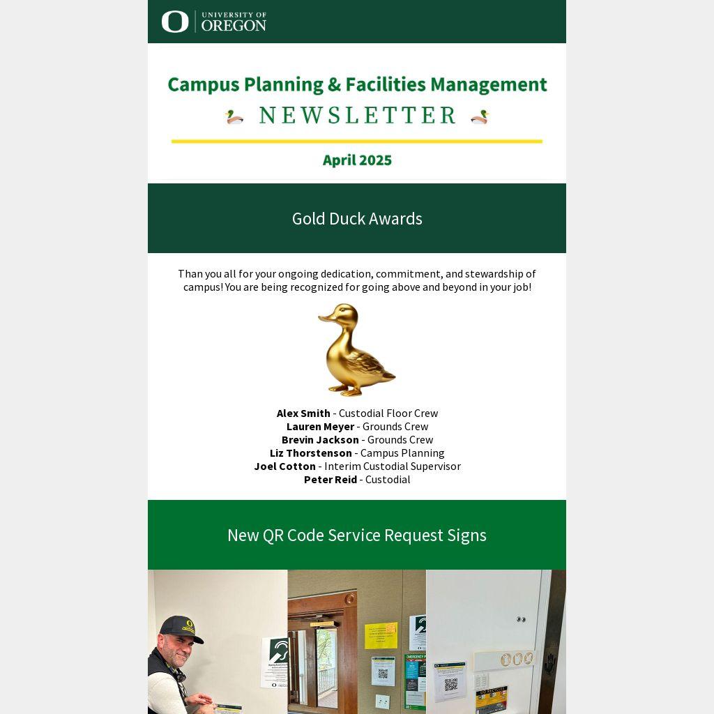 Than you all for your ongoing dedication, commitment, and stewardship of campus! You are being recognized for going above and beyond in your job!