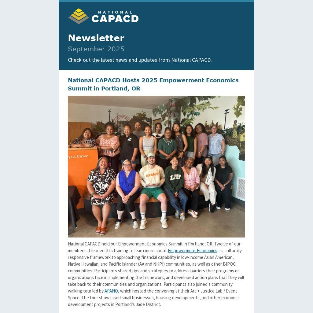 National CAPACD Hosts 2025 Empowerment Economics Summit in Portland, OR |